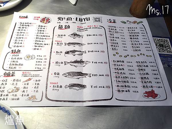 菜單很淺顯易懂,把魚類的長相都畫出來了,
